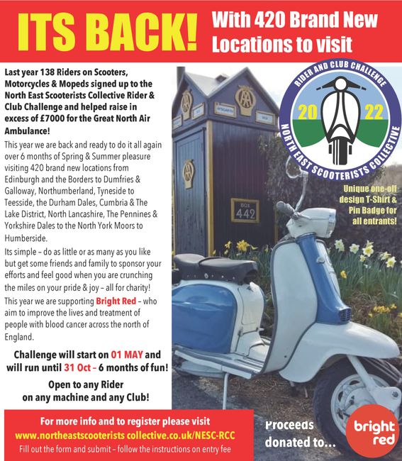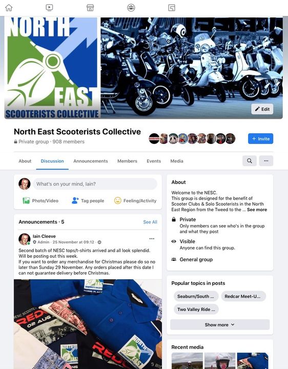 The North East Scooterists Collective FaceBook Group setup earlier in August was initially designed to give information on our Meet-Ups, Ride Outs and other Events.
